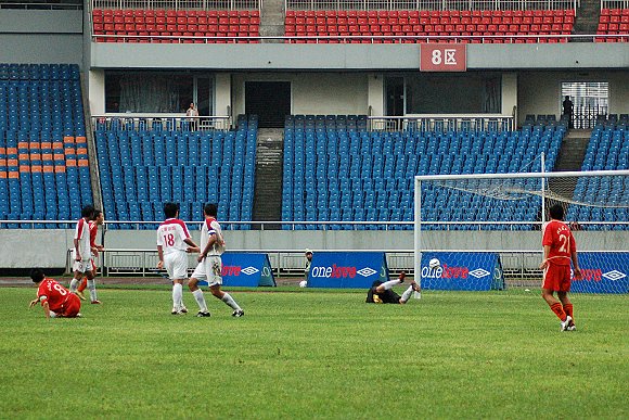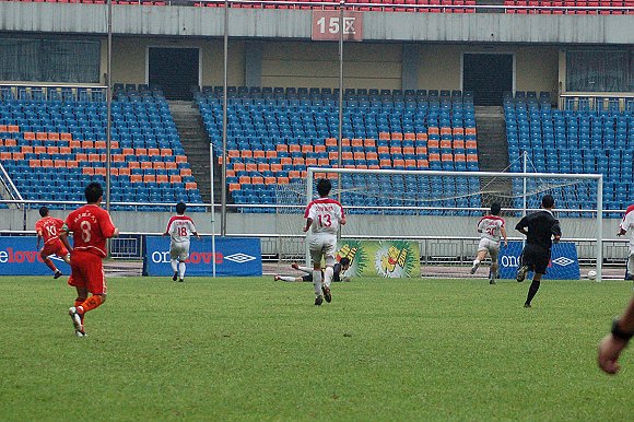 随着6号“点球专家”于飞的一脚巧射,场上的比分变为1:0。
