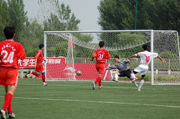 在7月4日小组赛最后一场与深圳大学队的比赛中,我校足球队以1:2负于深圳大学队,在本小组中与深圳大学一起进入了八强。7月5日下午,我校足球队将与东道主沈阳工业大学足球队展开争夺进入前四的比赛,相信进入淘汰赛阶段,比赛将更为精彩。