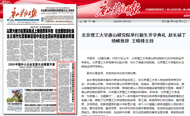 北京理工大学唐山研究院举行新生开学典礼 赵长禄丁绣峰致辞 王晓锋主持