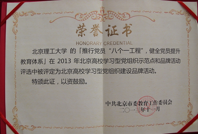 基础教育学院党委经过多年的工作时间,形成了特色党建工作的 “八个一”工程,即每学期“精读一本经典著作”、“撰写一篇读书心得”、“参加一次党课学习”、“进行一次主题讨论”、“参与一个学术小组”、“参加一次实践活动”、“撰写一篇实践报告”、“帮扶一位落后同学”。这些贴近大学生群体成长发展实际的举措,将理论学习和实践活动相结合,从理论学习、服务意识、先锋作用、实践能力、学术水平等多方面推动学生党员素质综合提升,取得实效,并获得“北京高校学习型党组织建设品牌活动”荣誉。